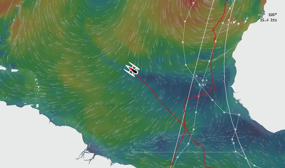 Une progression qui se fait dans un flux de Sud, Sud Est d'une quinzaine de noeuds, qui va faiblir dans les prochaines heures pour se stabiliser entre 8 et 11 noeuds pour les prochains jours. Des conditions qui permettront à Guirec Soudée de récupérer, de prendre soin de sa monture et peut-être tenter une réparation de fortune sur le safran endommagé, avant de passer l'équateur encore distant de 2000 milles.